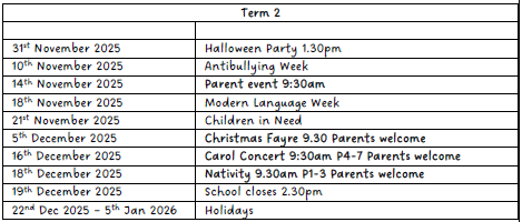 You will also receive a monthly newsletter with important dates for your diary and any relevant information.